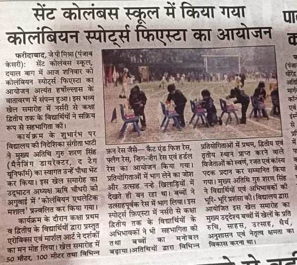 Annual Athletic Meet 2025 with Ms. Sangeeta Bhati (Director of St. Columbus) , Mr. Lakshya Bharadwaj (Advocate in Delhi High Court, Mr. Pankaj Sambharia, Branch Head Canara bank, Fbd, Ms. Sreelekha V.M (Principal)